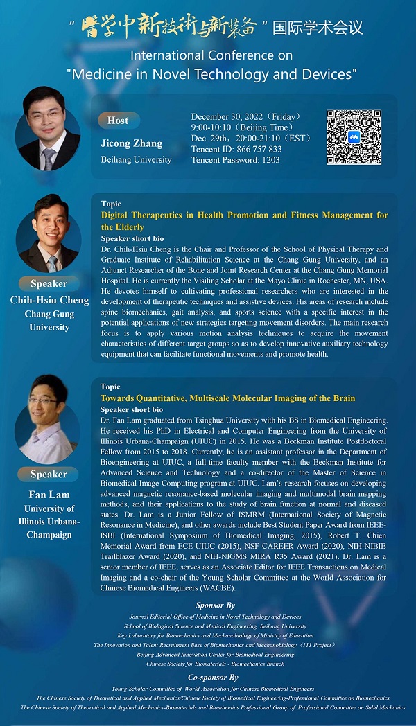 欢迎从事医工交叉领域研究的专家学者及医学界、产业界专家及同学们参会交流,期待与各位线上相聚!