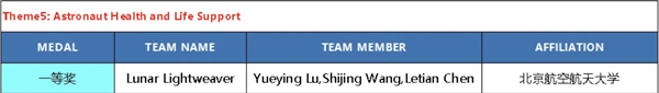 “Lunar Lightweaver”荣获本次赛事“Asronaut Health and Life Support”赛道一等奖(来源:MS2050大赛官网)
