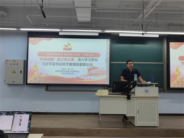 邢一冰同志以“爱国奉献担当,强国复兴有我"——教育强国的三问三思:深入学习贯彻习近平总书记关于教育的重要论述”为题,介绍并比较了2018年和2024年的全国教育大会主要内容和重要精神,并向同学们提出了“教育何以强国” “以何教育强国” “教育强国有我”的思考问题。同时,邢一冰同志深入阐述了“培养什么人,怎样培养人,为谁培养人”的教育三问与“思政引领力,民生保障力,人才竞争力,社会协同力,科技支撑力,国际影响力”的教育六力。邢一冰同志深度解读了两届全国教育大会的文件精神,展现了在党的领导下六年里新时代教育工作的新进展,体现了国家对教育工作的重视。最后邢一冰同志嘱托同学们要以研读官方文件等方式学习和领会党的会议精神。
